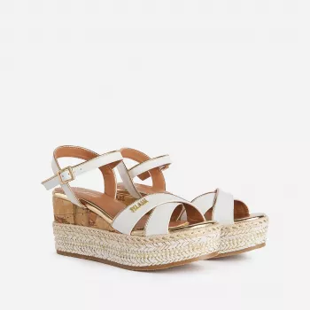 Alviero Martini Prima Classe Women’s White Wedge Sandals with Buckle Detail
