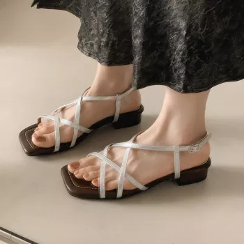 Summer Genuine Leather Chunky Heel Ankle Strap Sandals for Women