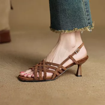 Elegant Summer Suede Open Toe Ankle Strap Heeled Sandals for Women