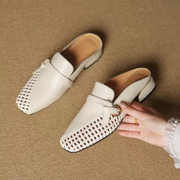 Summer Genuine Leather Women’s Mules Sandals with Chunky Heel