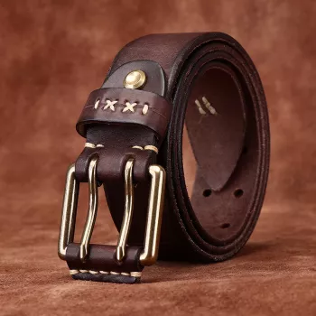 Men’s Genuine Leather Belt with Solid Brass Buckle – 1.5 Inch Wide