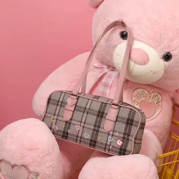 Chic Plaid Wool Underarm Shoulder Bag – Heart Print Satchel for Women